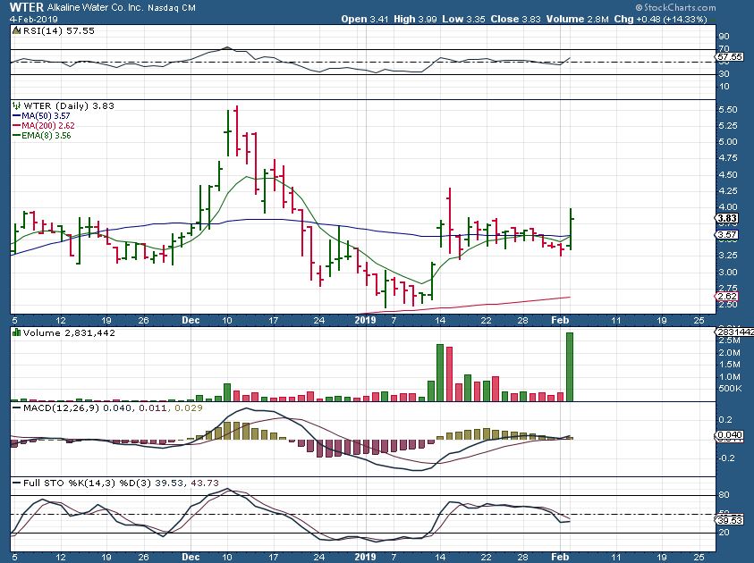 WTER & CNBX May be ready to run too. WTER lost the 50sm last week and suddenly jumps 14% with a sudden pop of volume & price. CNBX is riding the 50sma with volume popping.