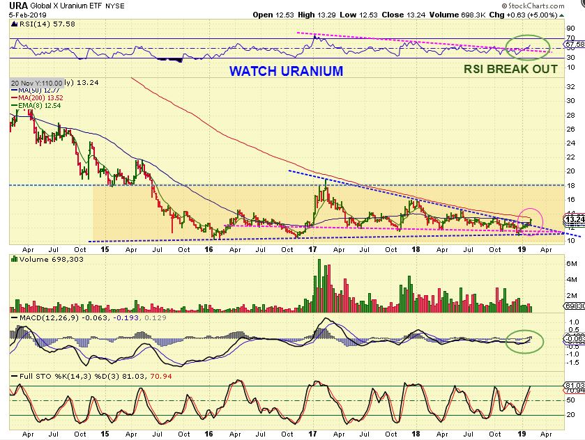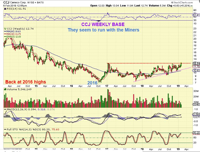 So I am thinking that these long bases forming in Uranium Stocks are ready to break out and run, at the same time as the Miners. That is what happened in 2016, so it could be a good ‘confirming’ sign for the Miners going forward too.