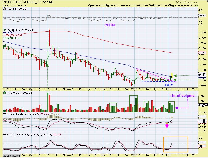 LBUY – I tried to buy this days ago as it bounced off of the 50sma. I figured that I’d just buy it the next day , but it toooook OFFFF!. POTN & LBUY are shown here to show that not all MJ stocks pulled back yesterday. Some set ups are still playing out upward.
