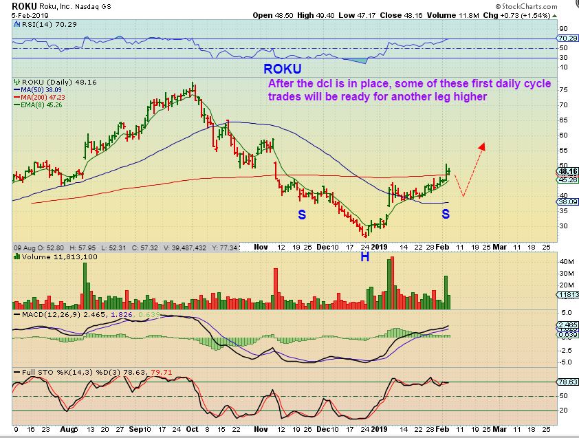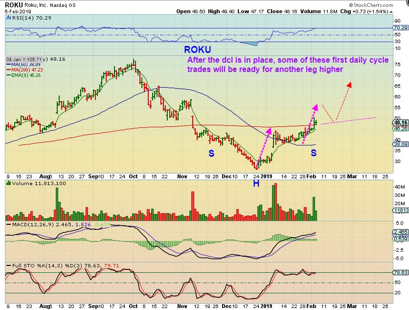 ROKU 2 CHARTS – After a pull back, many of these leaders will become ‘Buy’ Set ups for another leg up. These are just 2 ideas for ROKU to give you an idea of what we’ll be looking for. This is a pull back now to the 50sma, or…