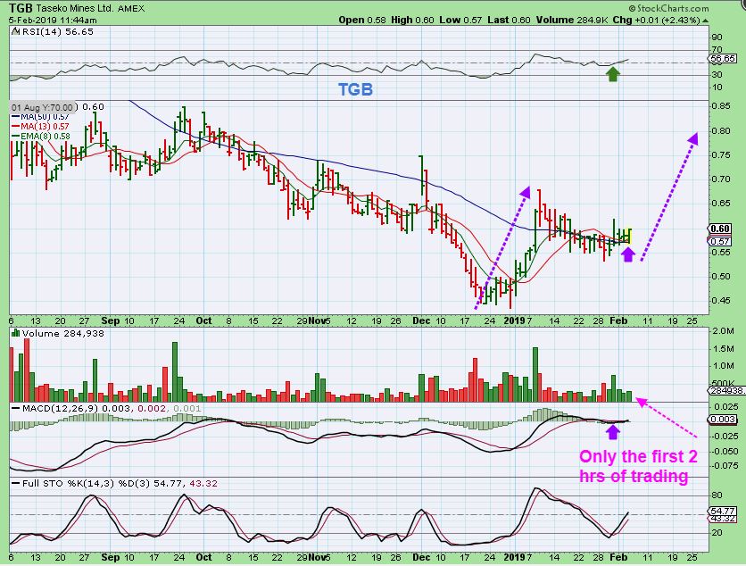 TGB – Several of the ‘Metals stocks’ highlighted recently continue to perform bullishly. TGB is crawling above the 50sma. We have TGB, WRN, AKS, X, HBM, etc acting correctly .