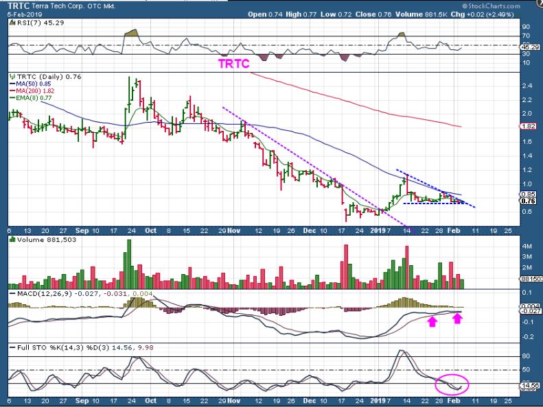TRTC – TRTC has consolidated and crawled under the 50sma to form a bullish looking wedge. It looks ready to break out imminently, so I think that I will buy this is it breaks higher.