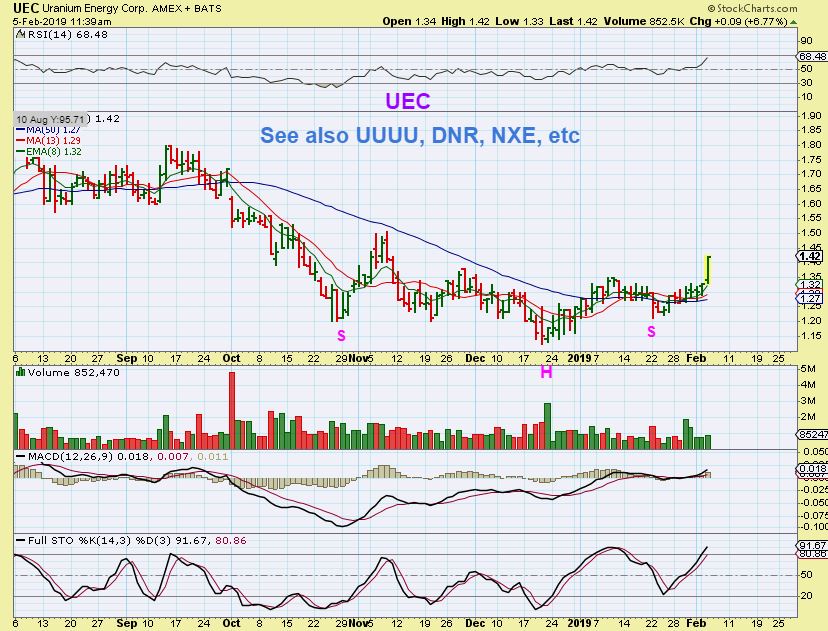 UEC – UEC broke higher from an inverse H&S Base Tuesday.