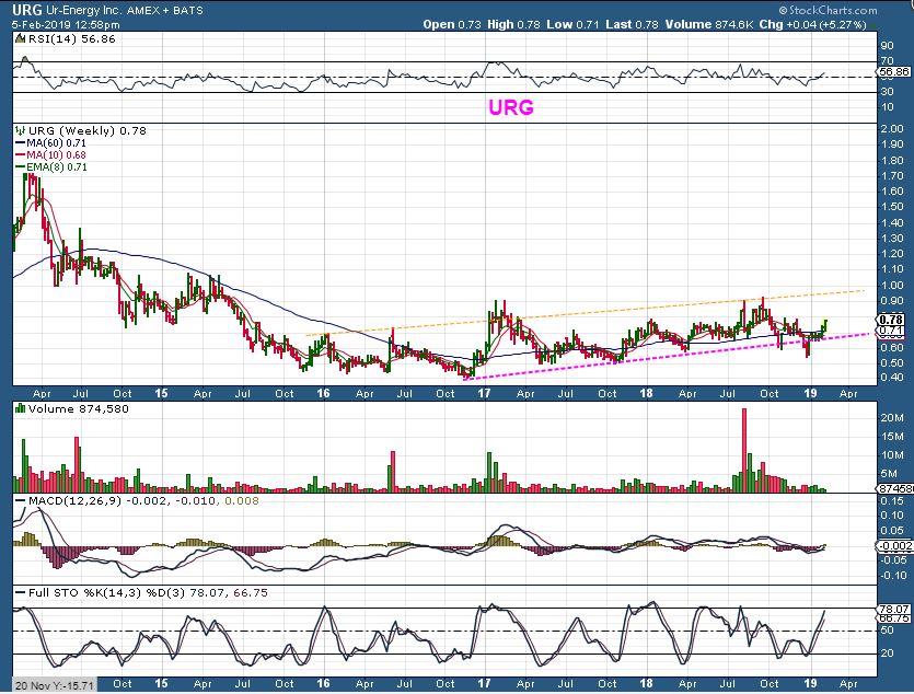 URG – URG broke higher, but I stepped back to look at another long base that has formed in this sector.