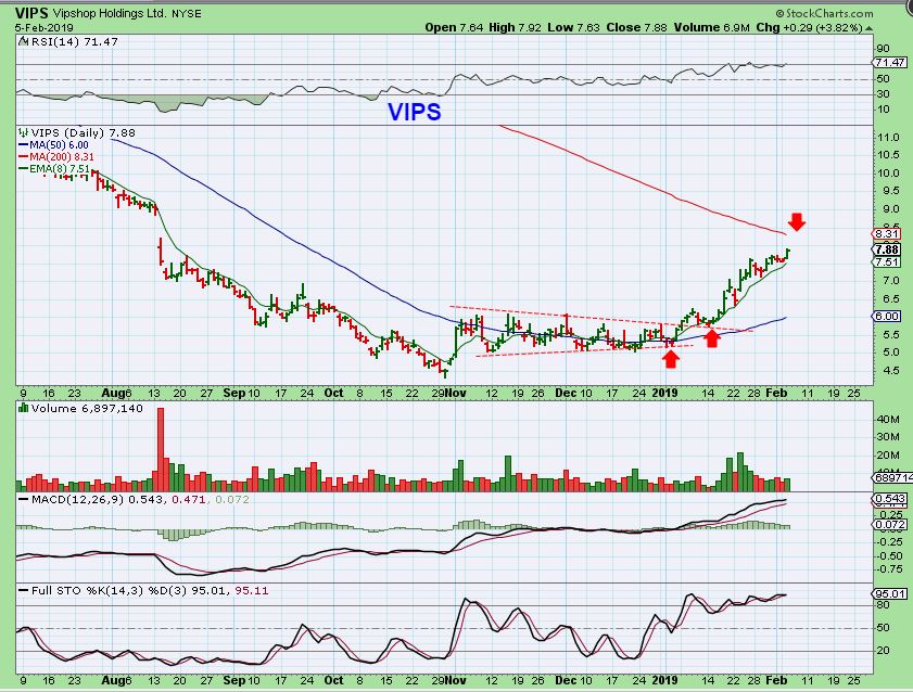 TRADES LIKE VIPS, ENPH, ETC are playing out nicely, but as mentioned recently, VIPS might be at an area that I would consider locking in gains ( All or 1/2) as it nears the 200sma. A great trade from the 2 buy points.