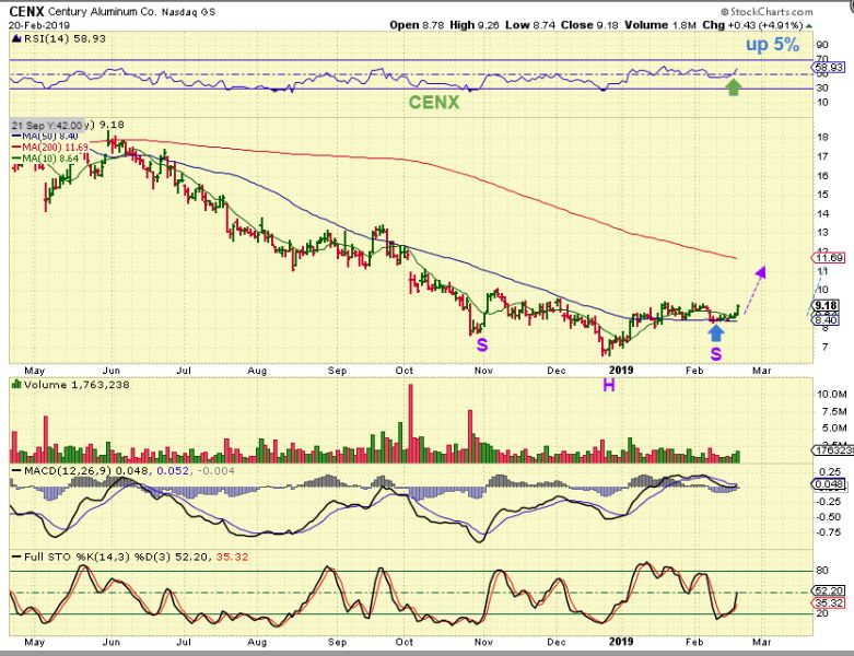 HBM – We have discussed the ‘other’ Metals since the end of last year too. HBM, CLF, X, AKS, TGB, CENX, SID, FCX, WRN, etc , as having put in their lows and possibly ready to move higher. This was an inverse H&S Buy posted on Jan 4.