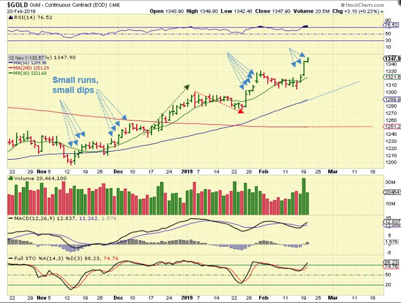 GOLD #2 – In this run higher, we have seen 4 or 5 day runs, then a sideways pause, repeat, repeat, except for the Dec-Jan run, so we’ll have to wait and see how deep this dip goes. Gold has been too strong to tag that 50sma, but a deeper ICL is also coming due, so we just have to play it with that in mind.