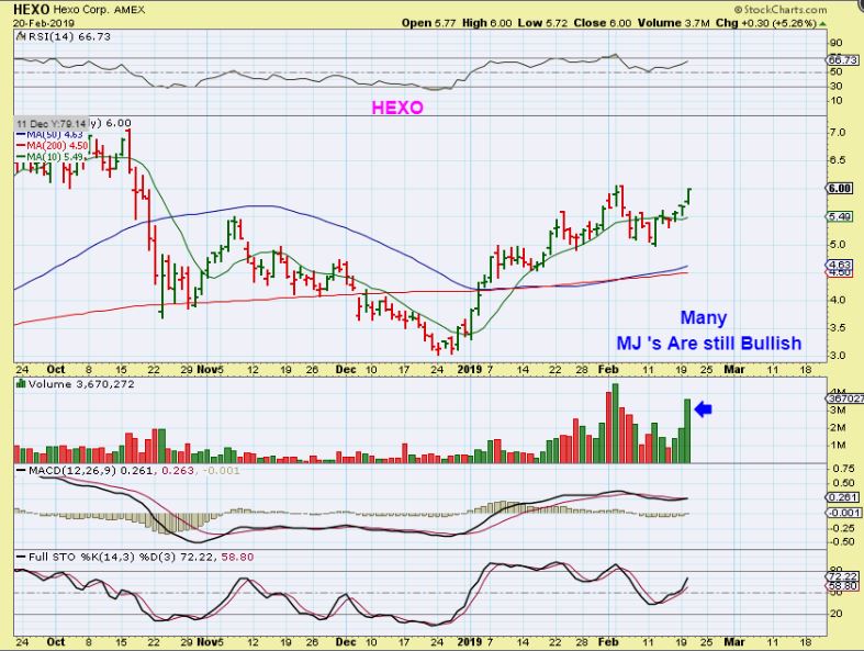HEXO – HEXO is leading the way, back at Feb highs. Look at Wednesdays volume, and I think this wants to run.