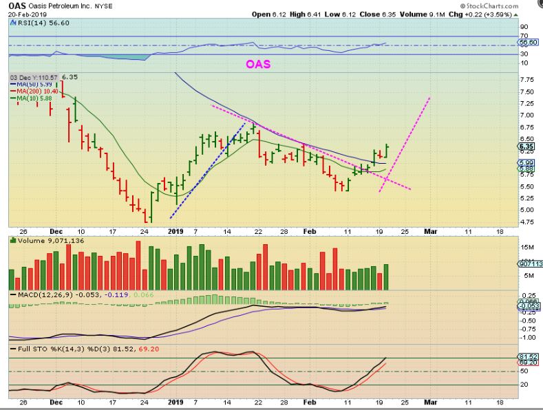 OAS – OAS, WTI, WLL, etc are Oil / Energy stocks that I usually trade near Oils lows. OAS still seems to be responding bullishly.