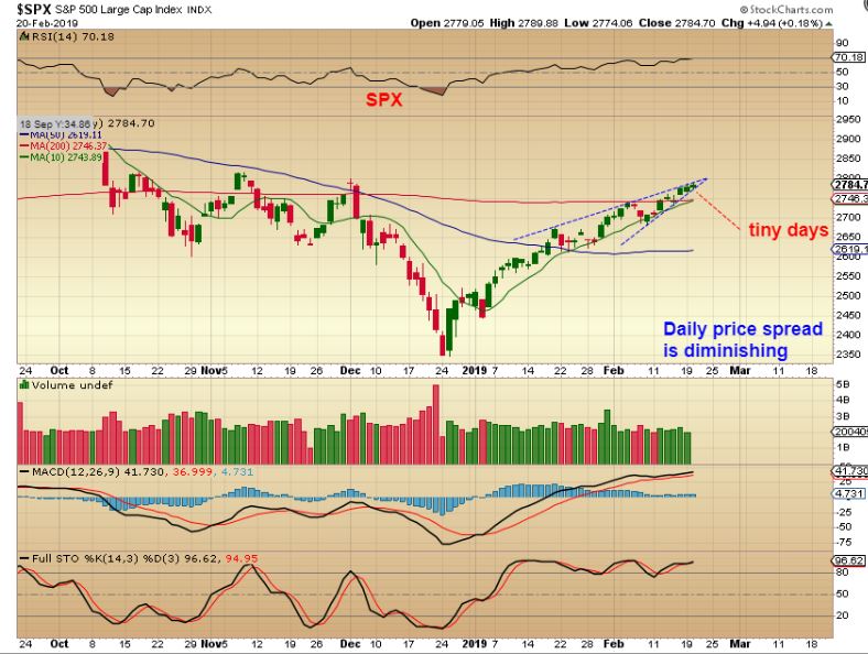SPX – Price is pinching tighter and this could be forming a short term bearish wedge if it doesn’t break out higher very soon.