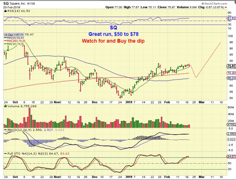 SQ – I would recommend watching the ones that did well and buy the dip. I expect a dcl is due in the General Markets. SQ ran from $50 to $78 for example, those were Great gains. Buy the dip? I’ll be watching CY, TSEM, MU, AMD, etc .