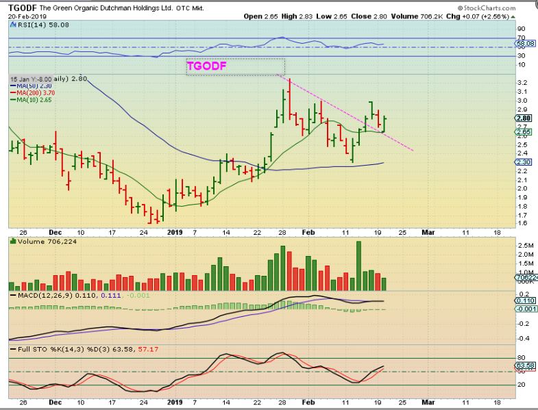 TGODF – I still own this and it is acting correctly, holding up at the 50 sma and now the 10sma.