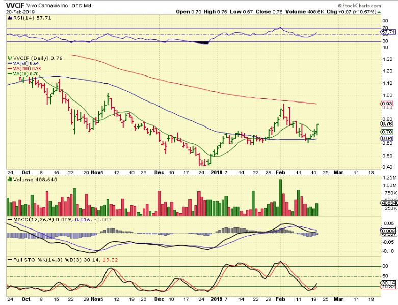 VVCIF – This one is just getting going after a reversal at support. Mark Marin reminded me to check this one out in the live trading area during the day Tuesday. It is holding support.
