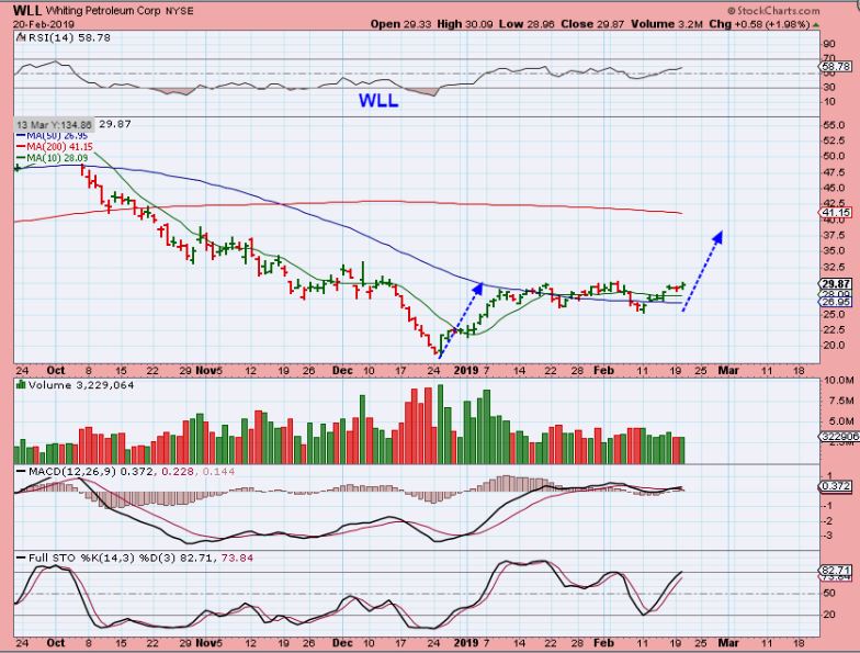 WLL – WLL has moved from under $20 to $29, but then went sideways for weeks. It may be ready to resume the second leg of the run. It moved $25 to $30 since the dcl.