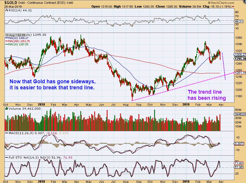 GOLD #2 – Back in late February at the ‘peak’ , it seemed like too much of a drop for such a bullish GOLD to do the trend line to break. As price has chopped sideways, the trend line moves higher, and now a trend line break looks much more possible or achievable, even on the next drop.
