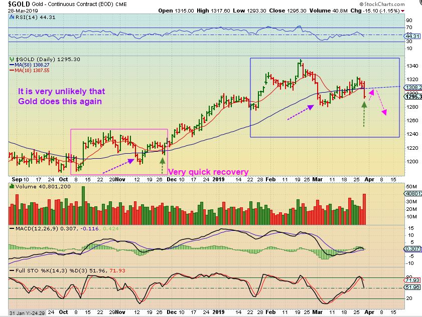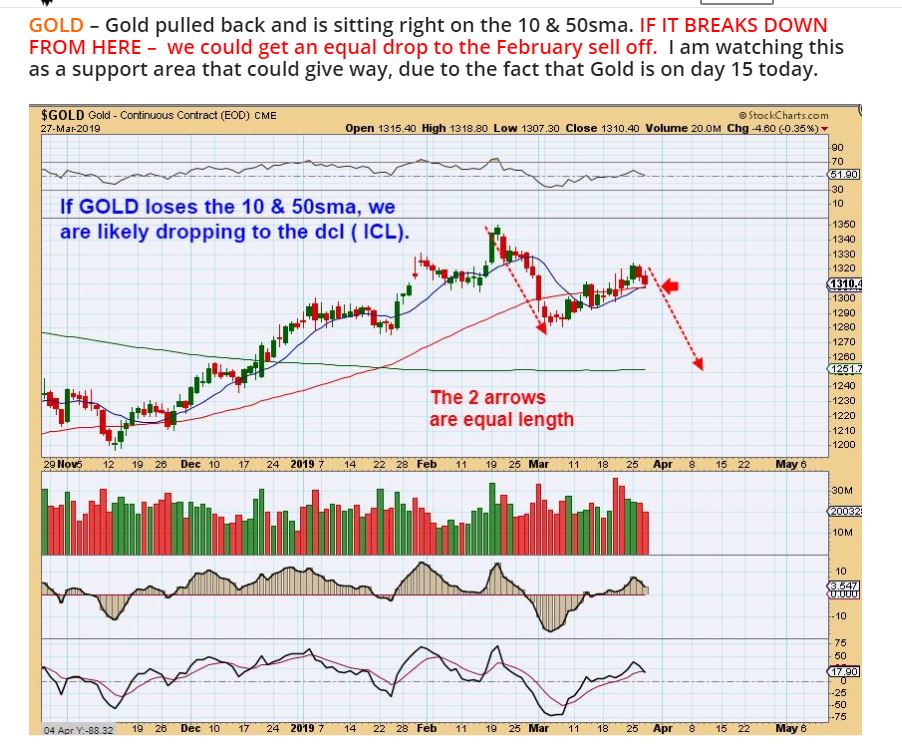 GOLD #1 – So we got the drop, breaking the 50sma, and that should be the start of a sell off into the next dcl . It will also likely be an ICL since we are 7+ months ahead of the Aug 2018 ICL.