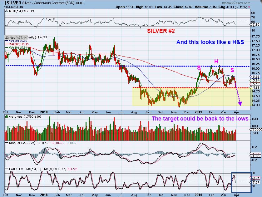 SILVER #2 – It is possible that with Silver, it breaks down as a head & shoulders. See the chart. IF IT JUST HOLDS UP AT SUPPORT WITH SIDEWAYS CHOP during an ICL sell off, then Silver is very strong. A drop back to those lows will set up a very good buy opportunity.