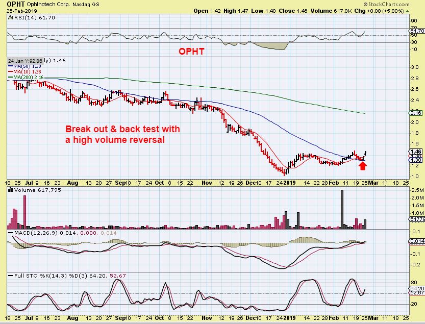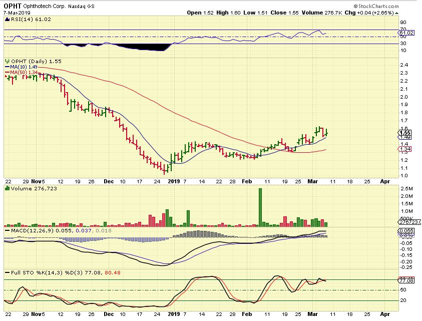 OPHT  –  OPHT is trying to hold above the 10sma.