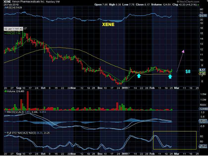 XENE  –  FEB 26,   XENE was a buy as it tagged the 50sma.