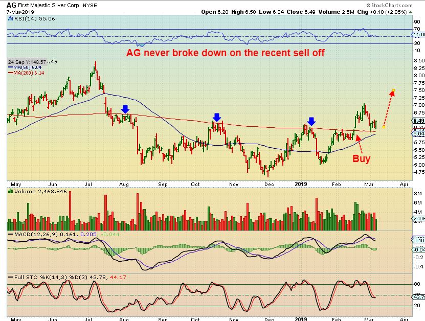 I will discuss these things further in the Weekend report, but as a reminder:   I have mentioned that I think some Miners will not break down on the pull back.  I said that  I bought AG as it broke out and it never broke back down, it looks like a simple ‘back test’ so far.    I think that some Miners will out perform others, like KL & AU did on the last run.