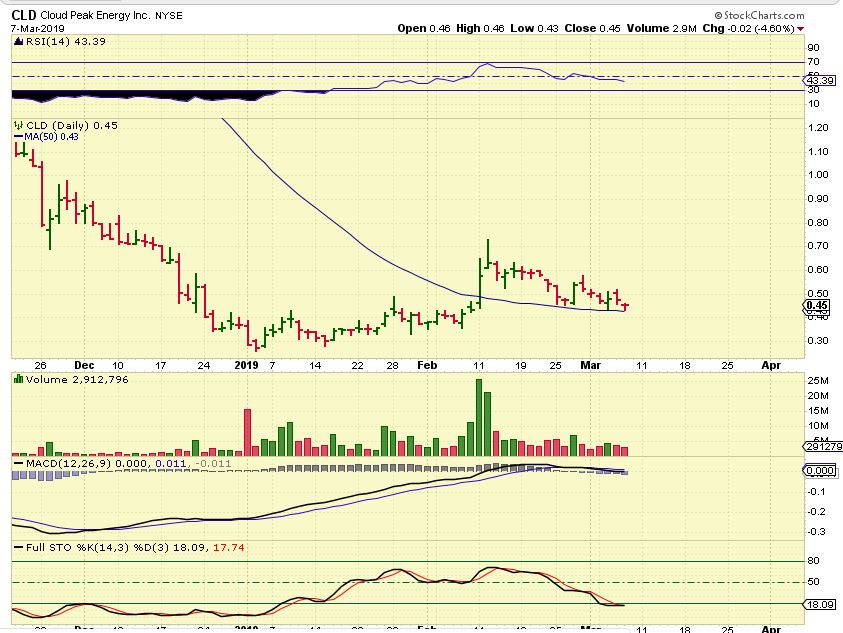 CLD – I am still watching CLD along the 50sma too. This didn’t crask the 50sma when the USD surged.  It is a bit of a Coal play.