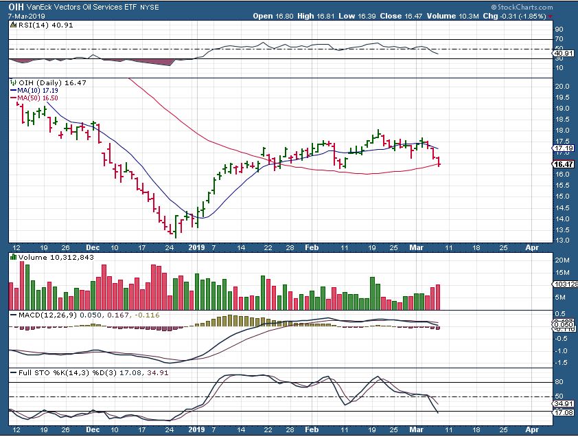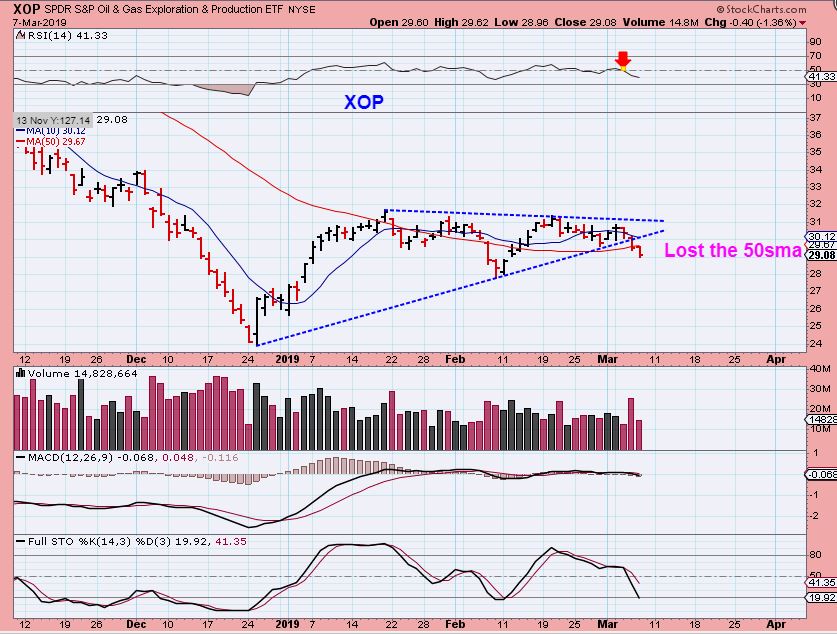XOP – And the XOP dropped further & broke the 50 sma, even though Oil held up.