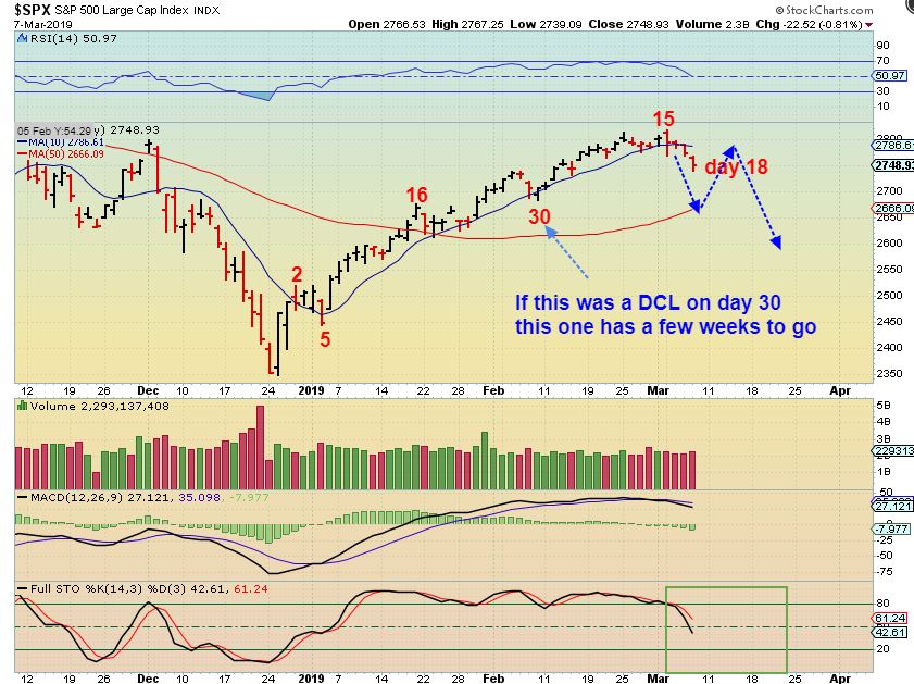 SPX From Yesterdays Report – On Wednesday the SPX closed under the 10sma and should continue lower to a dcl .