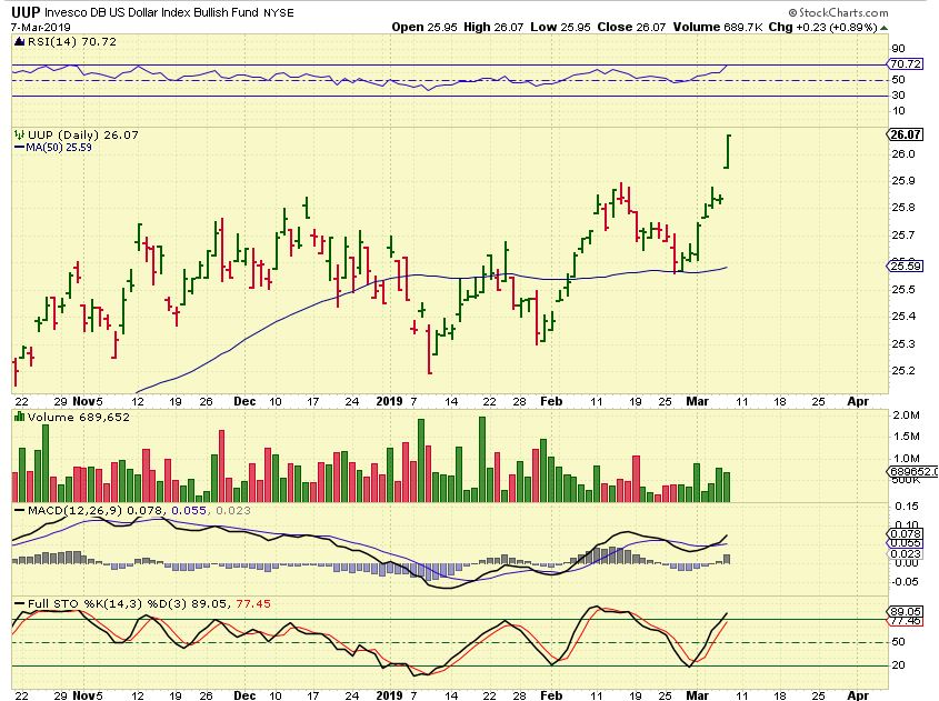 UUP –  The USD, shown here using the UUP,  blasted higher yesterday. That was a big move and it closed at the highs, but Gold, Silver,  & the Miners did not drop as much as the USD surged.  COPPER didn’t drop either,  so the Metals ignored this big move by the USD.   The USD is   strong with this burst, we’ll discuss it further in the weekend report.