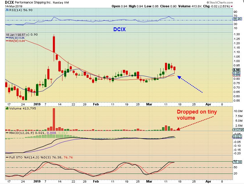 DCIX – I still own DCIX and it dropped on very light volume Thursday, bounced off of support, and remains o.k. at this point.