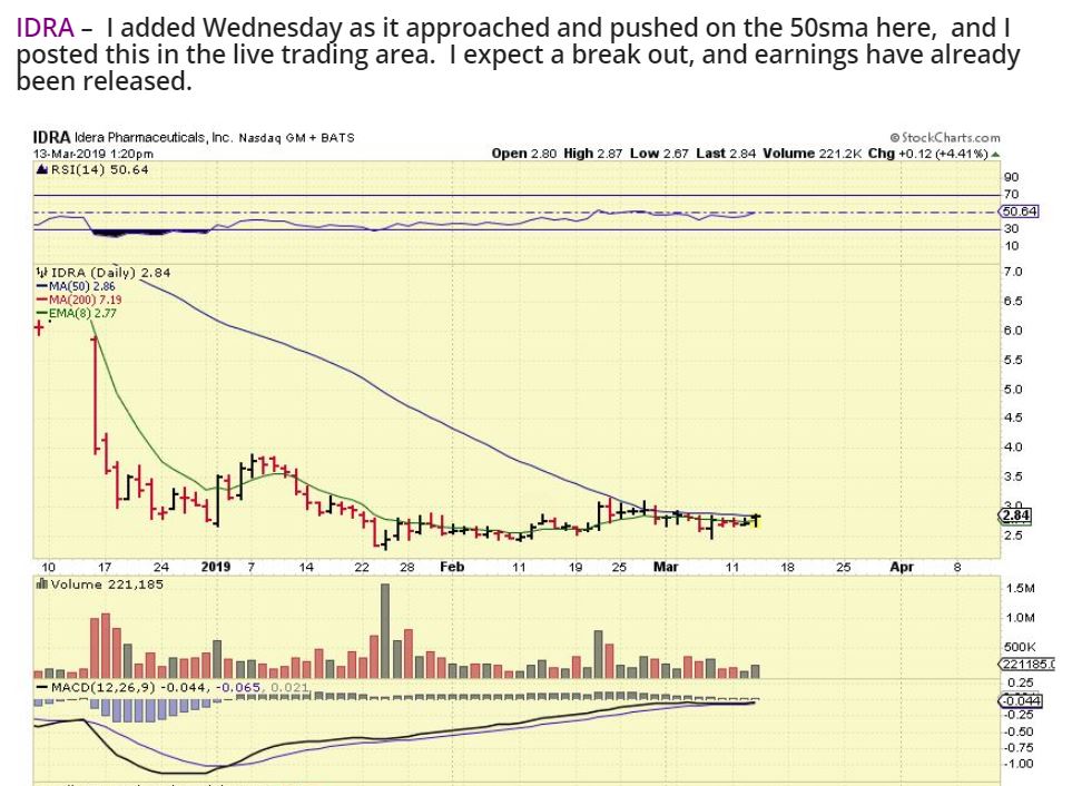 IDRA – It just barley closed above that 50sma, but I’ll take it as progress and I’m hoping for that push higher soon.
