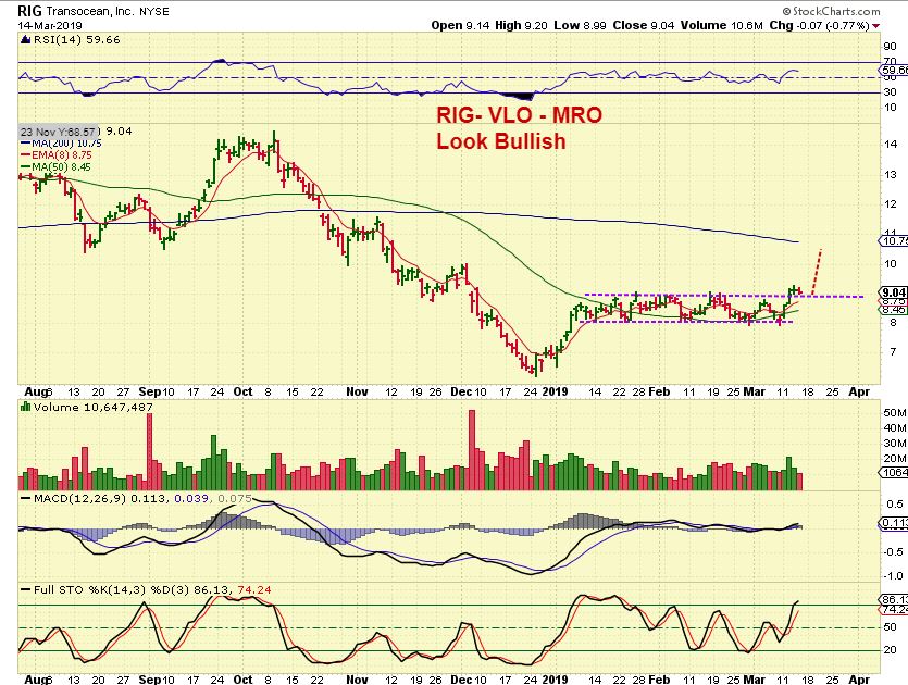 RIG – This is a long consolidation and these can lead to a nice run if it gets going. This would be a low risk entry. I like RIG, MRO, & VLO set ups right now.