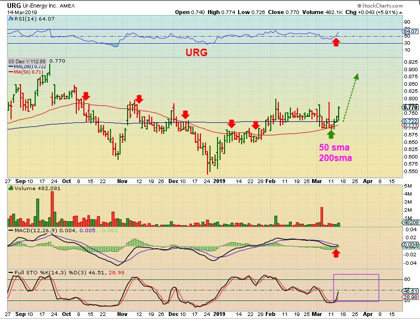 URG #1 – URG is now above both the 50 & 200sma, so it looks like it has no resistance .