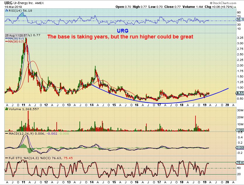 URG WEEKLY #2 – The churning & base building has been frustrating. We have traded these a few times, thinking that maybe it was time for them to break & run, but the base building continued. When it does break and run, the gains will be good.