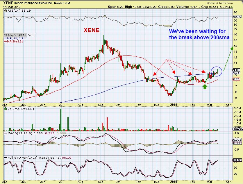 XENE – However the 200 sma was overhead and we haven’t been able to break & close above that. This attempt last week fell back below that 200 sma …