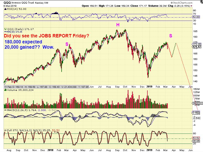 Now we are further on in time and the rally has been nice. Many stocks made good gains ( SQ, AMD, MU, TSEM,  and many more) ,  but we are entering what could be the right shoulder area,  so I  mention this because I don’t want anyone to lose sight of the fact that even very good rallies like March 2018 can still go south fast.  Read the chart.