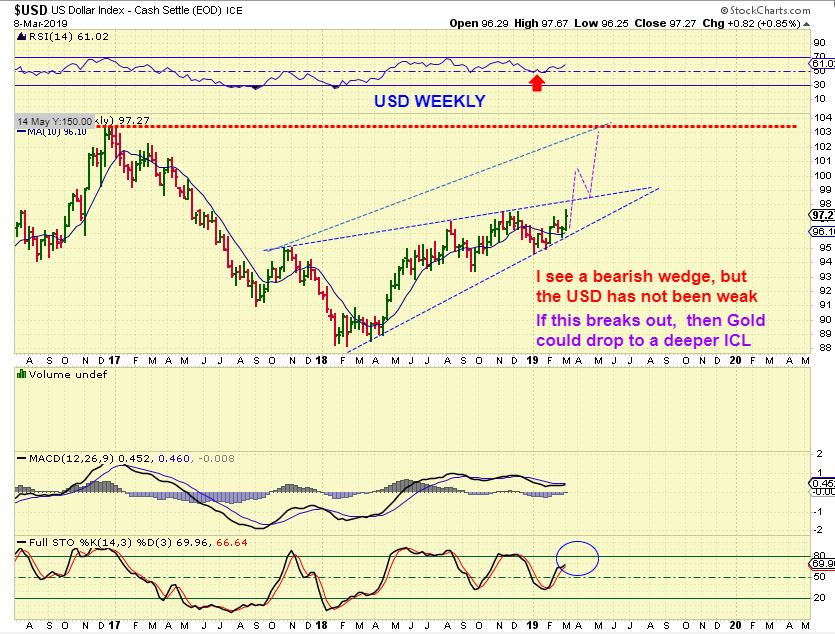 3.  Then the USD breaks down and Gold takes off out of the ICL.   THIS SEEMS MOST LIKELY TO HAPPEN.