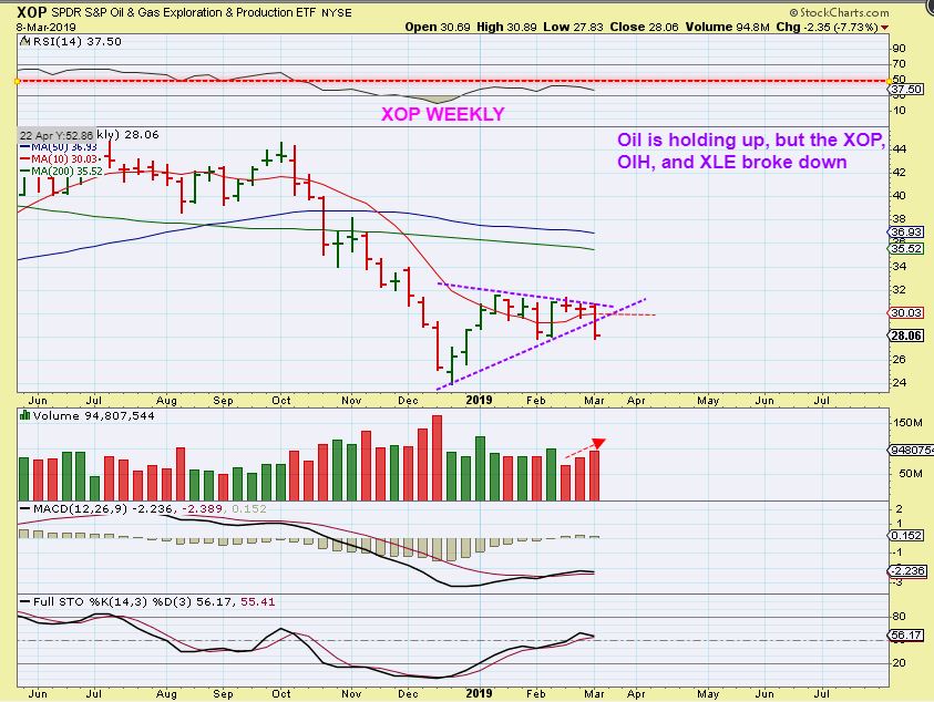 XOP WEEKLY –  And last week, the weakness really shined through. XOP lost the 10 week ma.