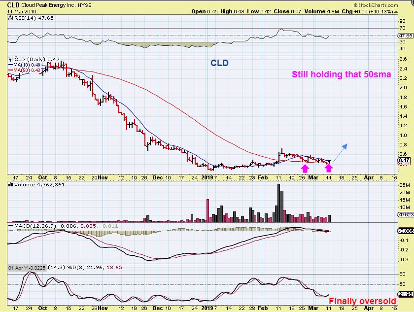 CLD – This volume pop Monday as it crawls along the 50sma may be the start of a climb higher. Buy a break higher with a TIGHT STOP.