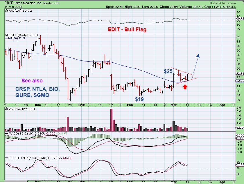 EDIT – I discussed EDIT, CRSP, NTLA, QURE, etc. recently as bullish set ups in this special ‘Gene therapy’ sector. Look how EDIT reversed at the 50sma with a bull flag. This was and is a buy, in my opinion. Low risk with a stop under the 50sma. It doesn’t look like much, but that was already a $19-$25 Move.