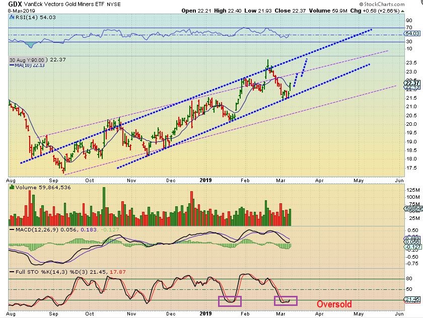 GDX – The former Channel ( purple) that I was using for the Miners seems to be getting steeper in the incline with the recent bullishness, so I re-drew it with a new channel (blue) . We’ll see if GDX can get to the top of the channel or not.