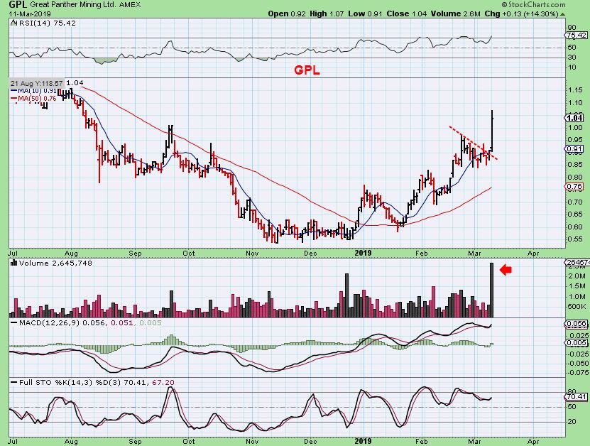 GPL – Stepping back, GPL WEEKLY actually broke out with that move.This now looks like a break down and recovery in GPL. I will try to hold this as a buy & hold, like my AG, unless it really breaks down later. Unfortunately, that trend line could get back tested.