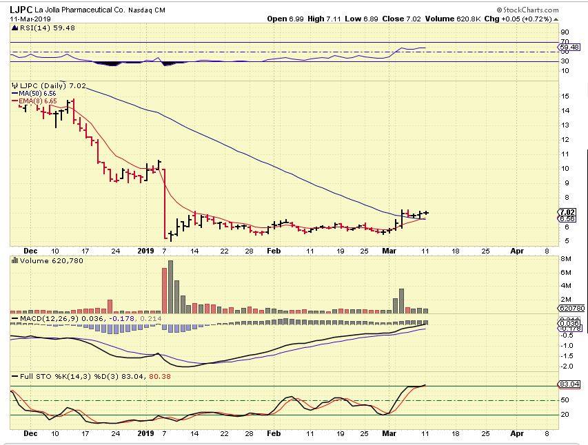 LJPC – I bought this on the break out too, and I still own this. I mentioned then that it may bull flag before taking off again, and it seems to be doing that. The markets sold off and this just flagged along the 50sma, so I am hoping for follow through, with excellent upside potential here too. This has been a ‘buy with a stop’ too.