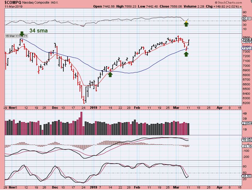 NASDAQ – The NASDAQ also closed above the 10 sma too, after reversing off of the 34 sma.