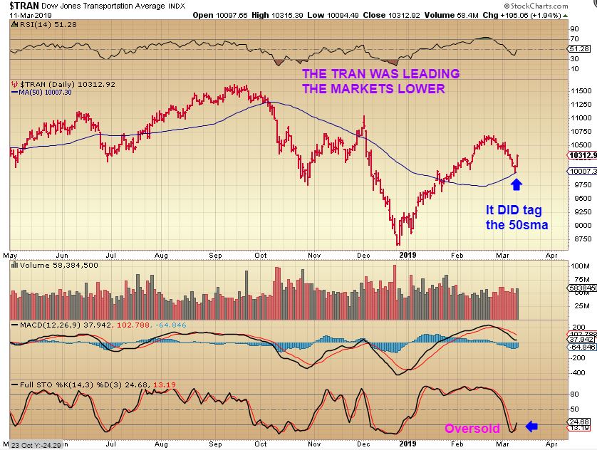 TRAN – The TRAN actually DID tag the 50sma, became oversold, and now reversed higher. This looks like a DCL, right?