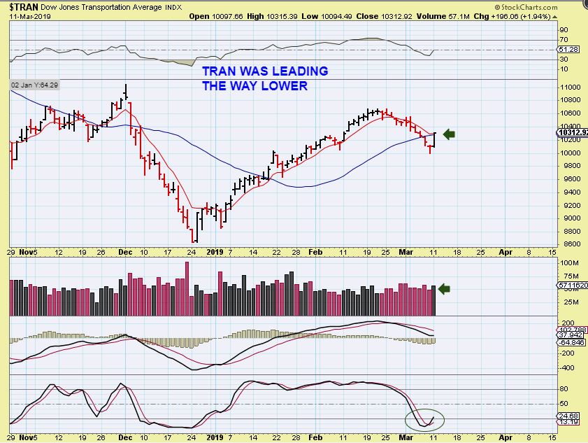 TRAN – The Tran was leading the markets lower, and broke higher Monday too, but notice this…