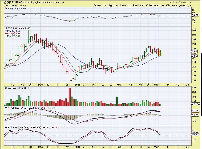 ZIOP– I recommended ZIOP bouncing off of that 20sma here on March 5th .