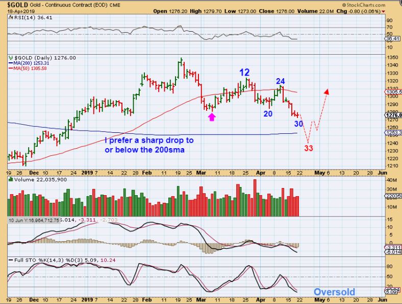Gold could drop for a shake out below the 200sma, and the timing is right for that drop.