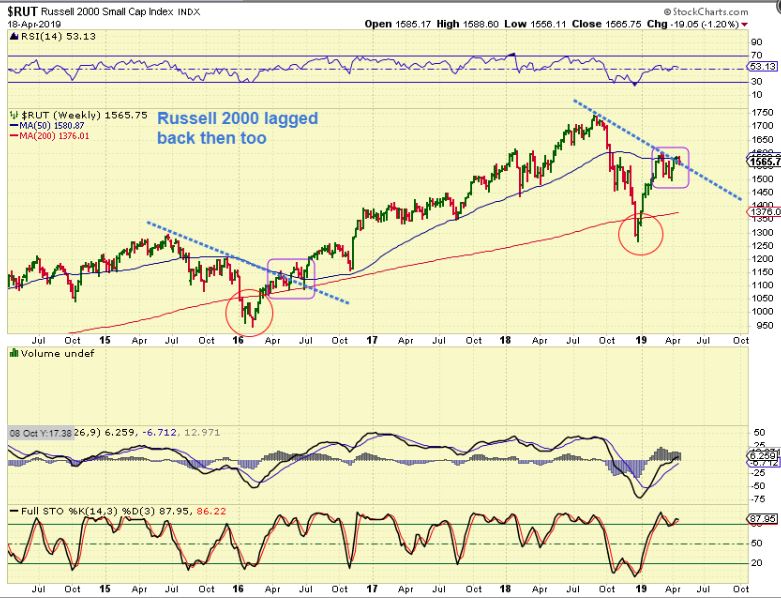 RUT WEEKLY – This also looks similar to the choppy slow progress made after the 2016 sell off broke below the 200sma. That happened in 2018 too. It actually bounced & chopped around sideways for that whole year. It made higher lows and higher highs, but the pull backs were deep.