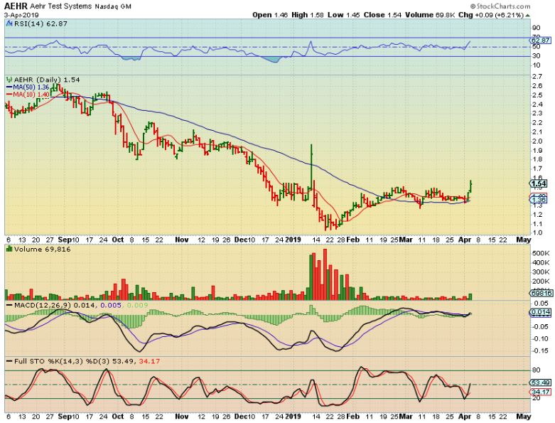 UCTT – This was a good run that entered consolidation. As it crawled along the underside of the 50sma, it broke higher yesterday. I would have liked more volume, but this is bullish action.