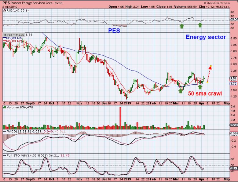 PES – So this has been choppy base building in the Energy Sector. Volume started to increase yesterday, so it caught my eye above the 50sma.